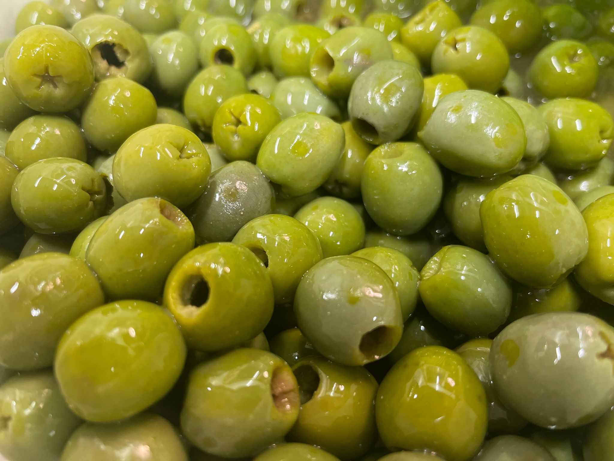 (IT) Olive verdi denocciolate in salamoia, croccanti e dal sapore equilibrato. Perfette per aperitivi, insalate e piatti mediterranei..